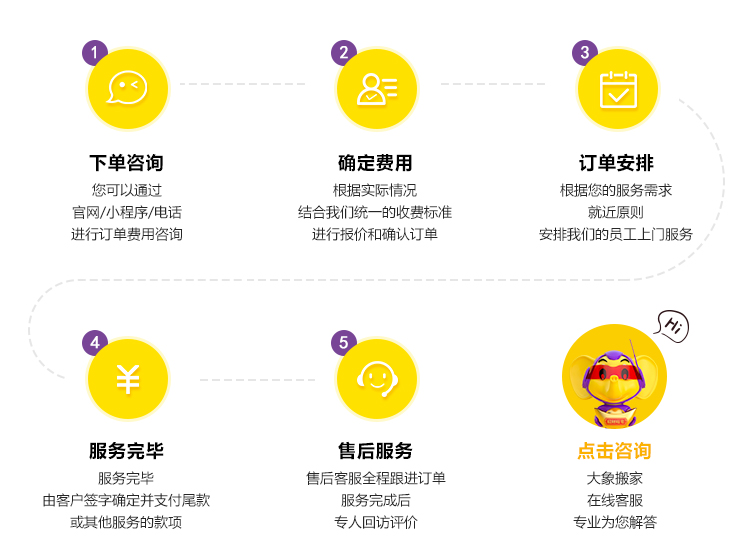 大象寓意:順風順水,招財旺宅,吉祥如意,尊貴平安,健康長壽。我們除了提供搬家入戶服務,到家服務,更多的是希望將美好幸福,帶給每一個家庭;將蒸蒸日上帶給每一個企業。